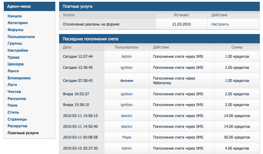 Теперь Вы можете отключить рекламу на своем форуме, перейдя во вкладку «Платные услуги» в админ-панели форума.