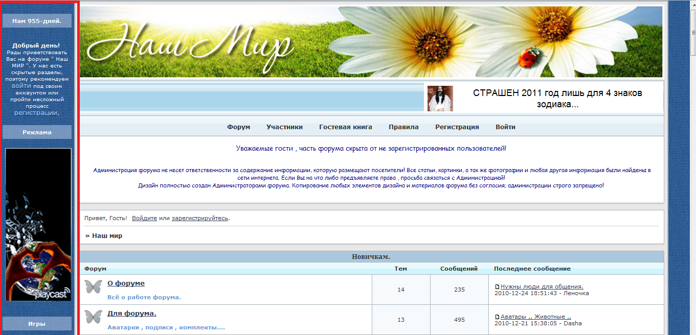 | Нужен скрипт на временное закрытие форума | Корзина | Пт, 11 Апр 2008 |