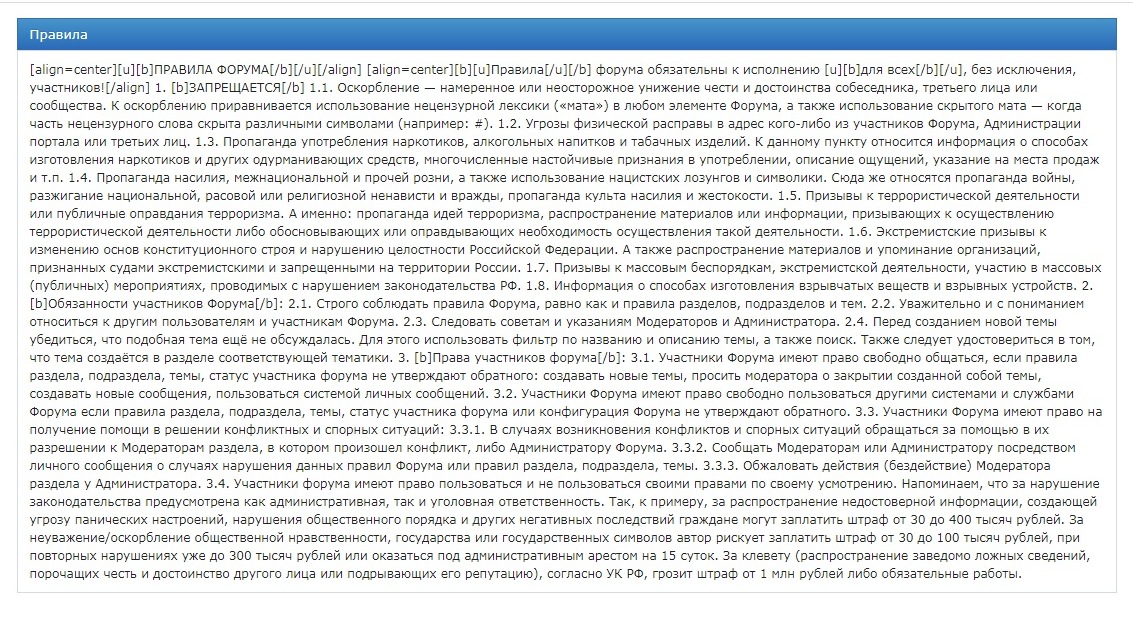 Захожу в появившуюся графу Правила и вижу "кашу-малашу". Все слова включая код идут без форматирования и даже не видят перехода на новую строку.
