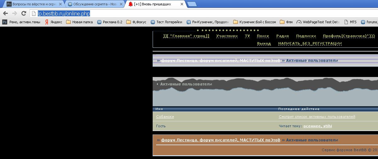 Вы здесь » Единый форум поддержки » Архив » Обсуждение скрипта - Новые посетители,, во вкладке