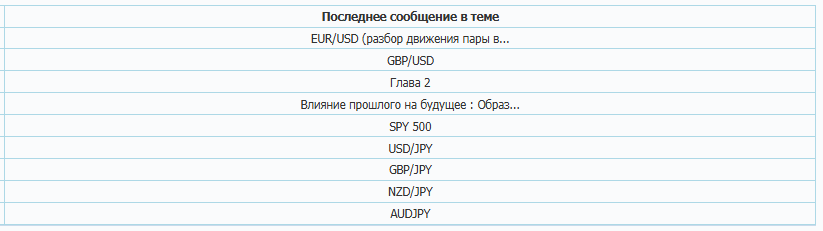 <thead><tr><th>Автор</th><th>Последнее сообщение в теме</th><th>Дата</th><th>Время написания поста</th></tr>\
