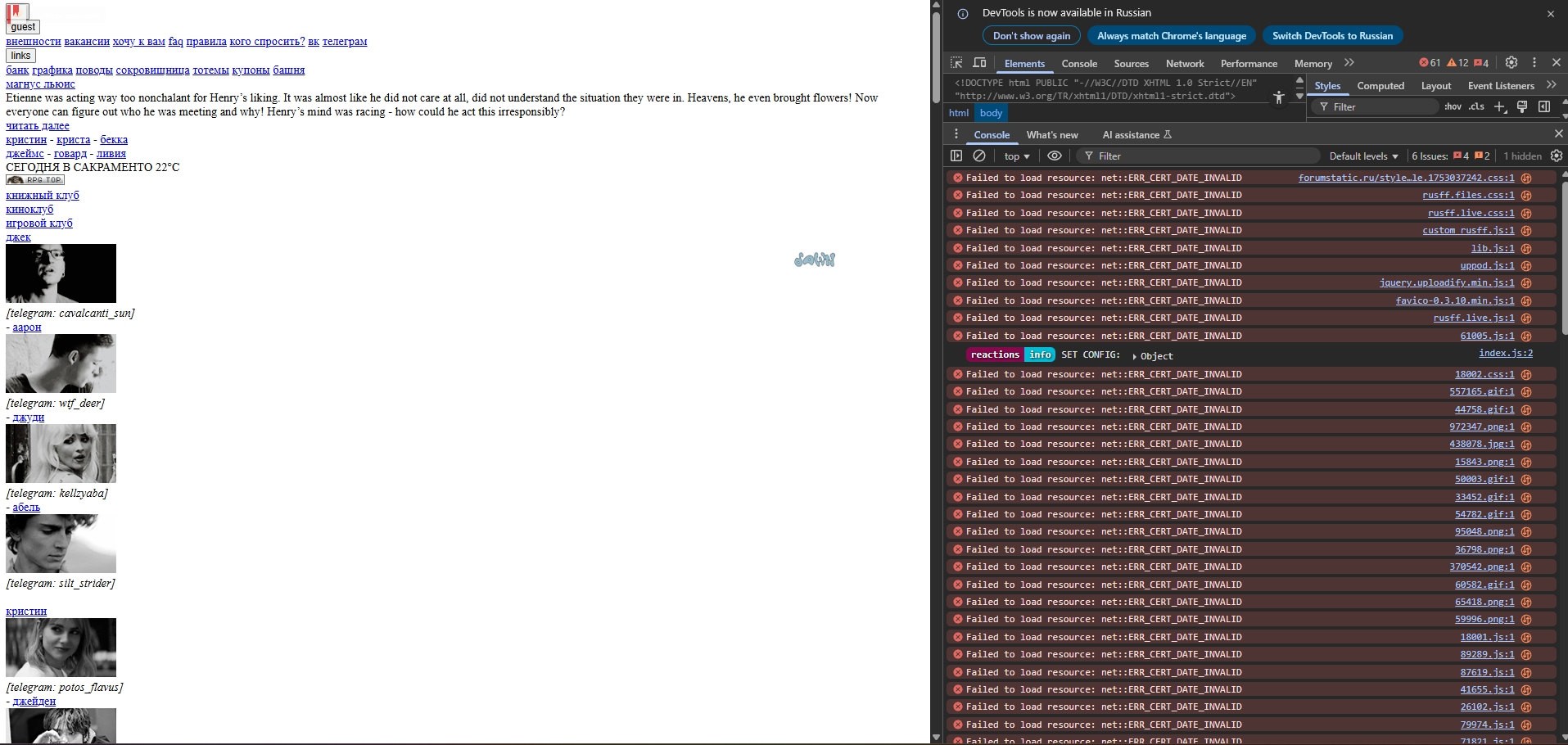 Проблема: не прогружается форум, консоль в проблемах с сертификатом