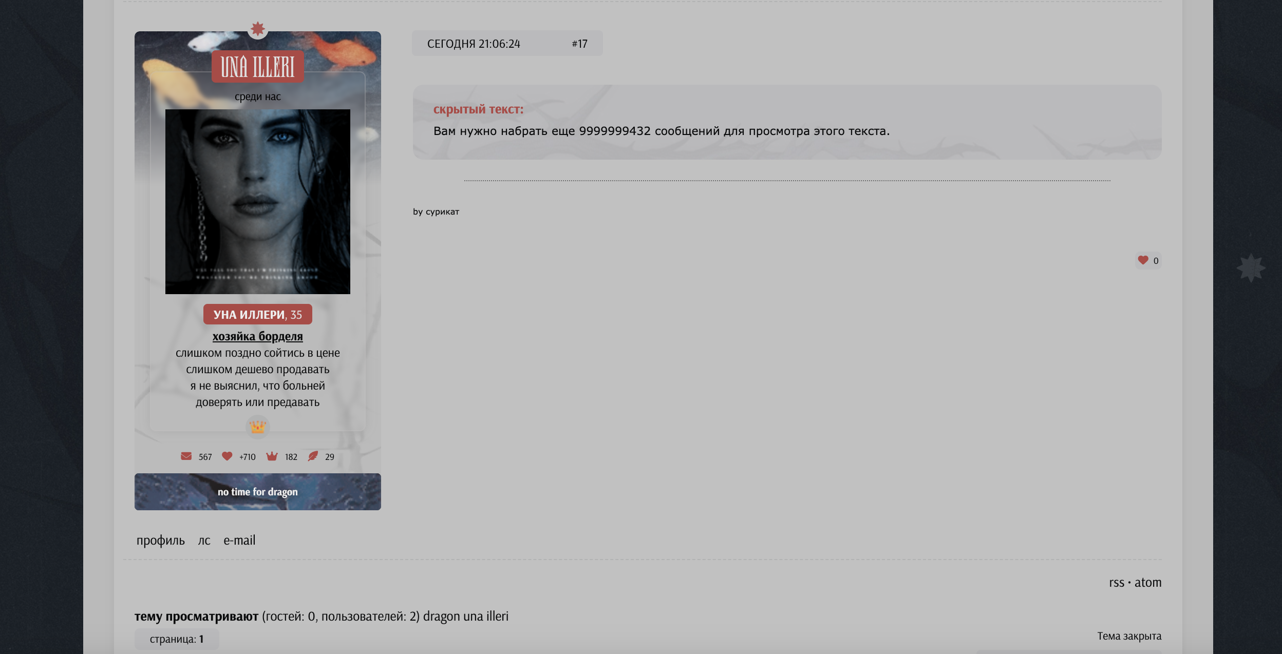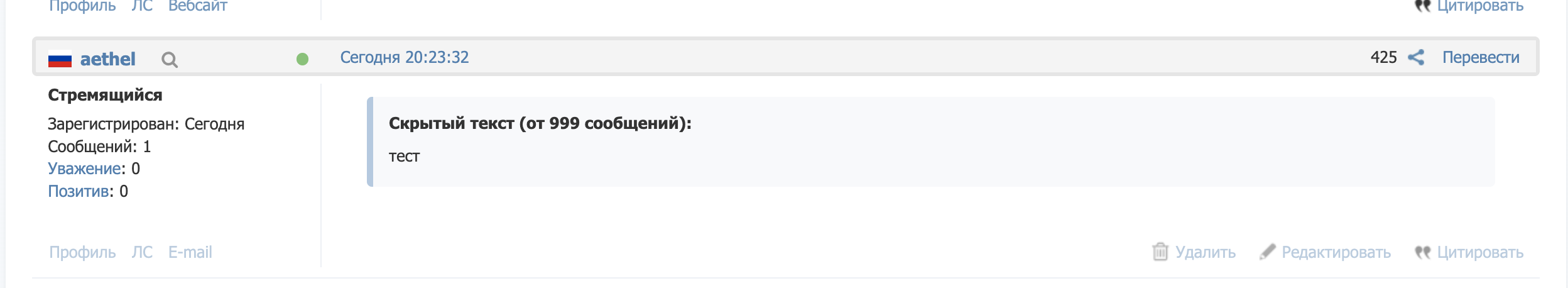 Раньше при оставлении сообщений под хайдом сам участник, оставивший сообщение, видел свой текст