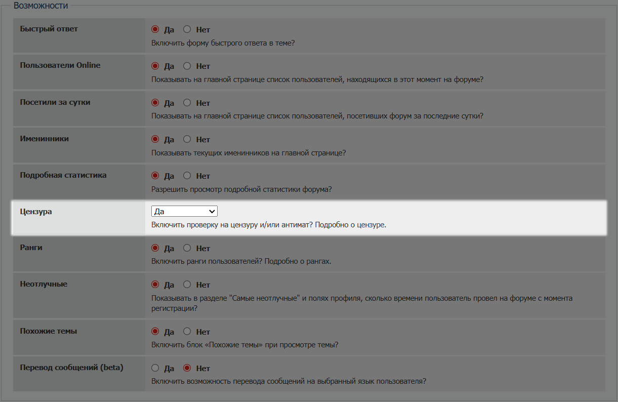 В случае выбора типа блокировки "Токсичный пользователь", такой пользователь блокируется не полностью, у него остаётся возможность просматривать содержимое форума, однако его профиль будет подвергнут случайным задержкам, имитирующим сбои в работе сети или прочим проблемам, не давая отправлять сообщения и полноценно пользоваться форумом.