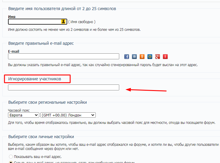 Что Вам нужно сделать по минимуму: Зайти в Администрирование-Поля профиля, найти поле игнорирование участников, нажать редактирование и отключить поле при регистрации: