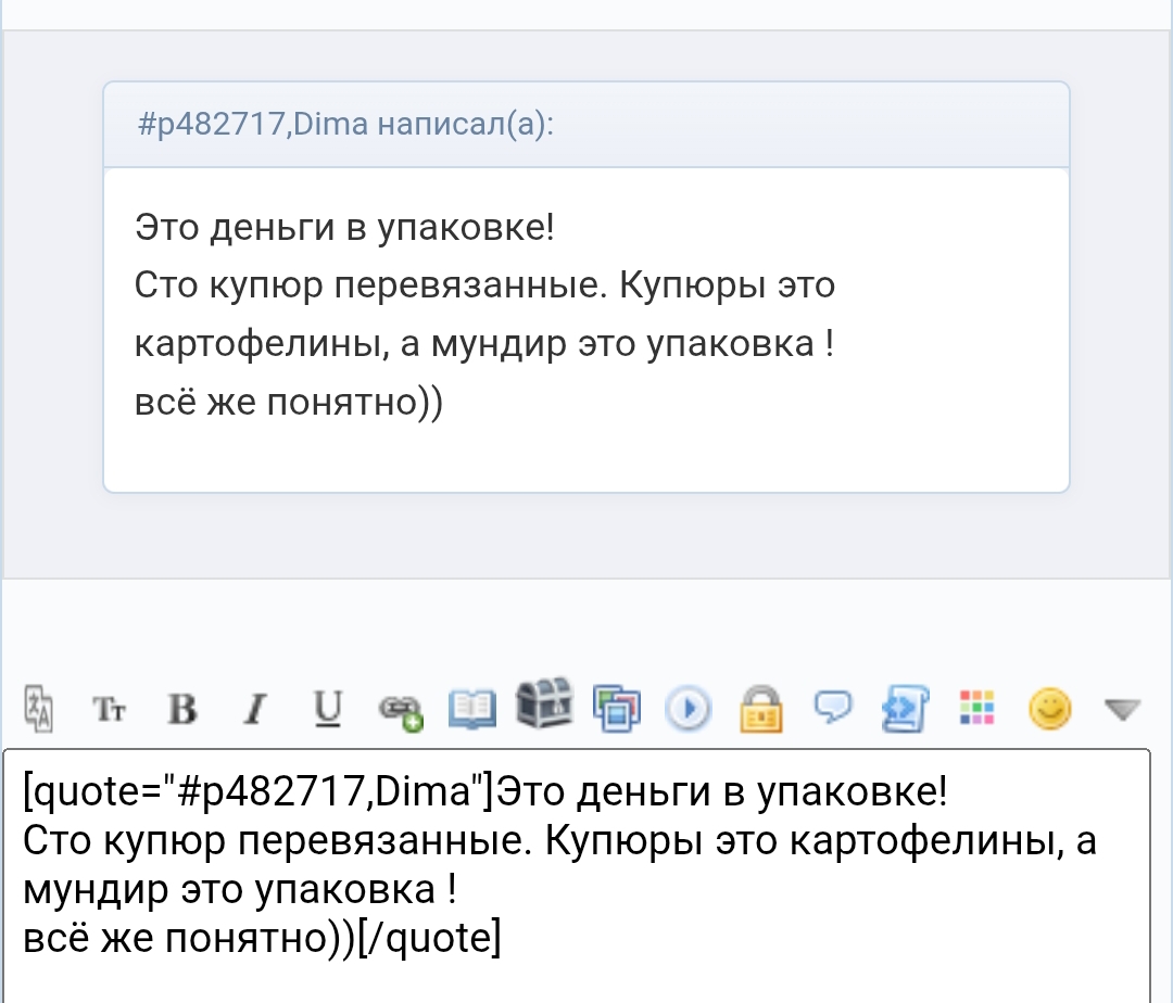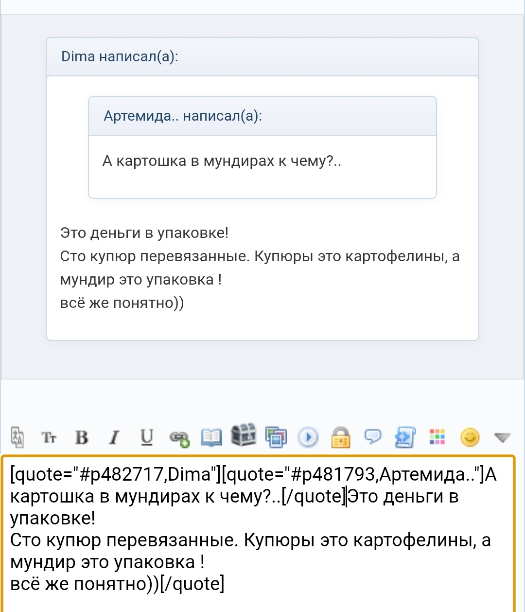 Добавьте ниже установочного кода BB-цитаты (в форму ответа):