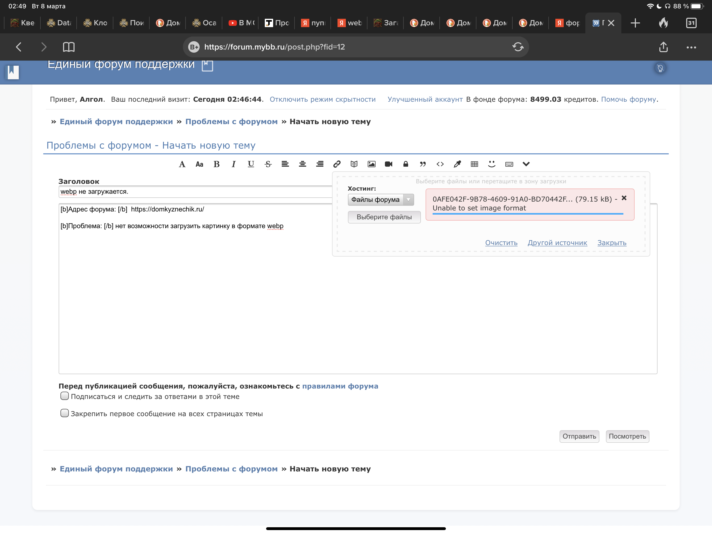 Проблема: Доброй ночи . @kernel , простите ради Бога, это снова я. Снова нет возможности загрузить картинку в формате webp ,пишет, что формат не поддерживается .