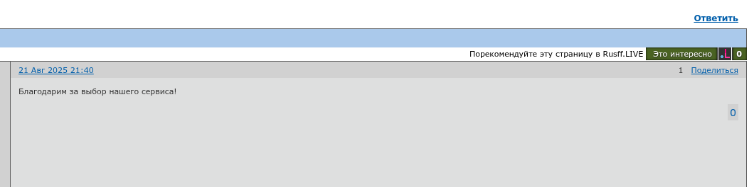 Neo.Neo написал(а):Я Вас очень хорошо понимаю. Но если взять, к примеру, "партнёрку" https://ixbb.ru/, то куда ведёт строчка "тех поддержка" на их Главной? Прямиком сюда. Это и понятно - своей техподдержки у них нет, а на руссфф есть, но она какая-то стрёмная, имхо. Не в обиду сервису будь сказано. Я эти модули ("Это интересно" и "Поделиться") и так отключаю, даже когда они нормально работают. Просто выдала фидбэк со стороны обычного юзера, что и где не работает или работает, но не так. Это ни в коем случае не претензия. Кстати, по поводу "Поделиться": я думала, что эта общая фича от Майбб и для "партнёрок". Впрочем, неважно. Я смотрю, модуль "Поделиться" и у Вас на ЕФП отключён - то ли тоже не "фунциклирует" на десктопе (!), то ли Вы его сами отключили. Проверила на мобильнике - значок (это, кстати, Ваш скрипт) "Поделиться" присутствует.